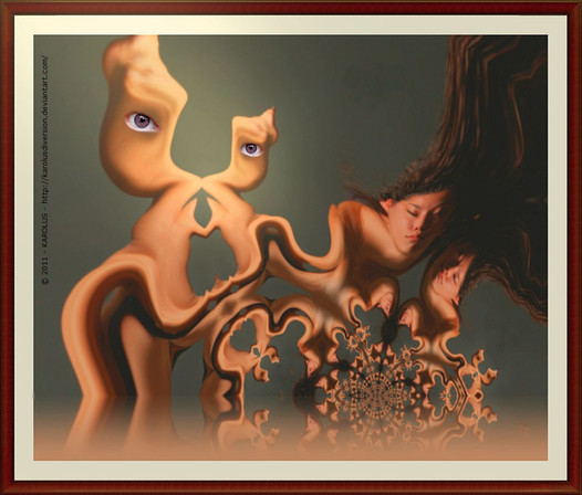 It shows the uncomfortable fight between the "I know I shouldn't" and the "I want to........"Β I think struggle is the key word for me regarding this manipulated work.Β Really well depicted.Β