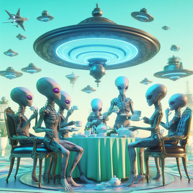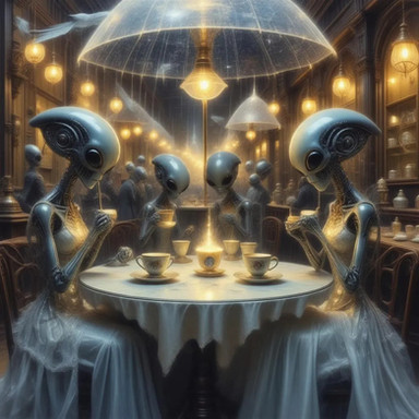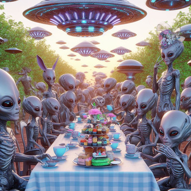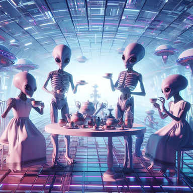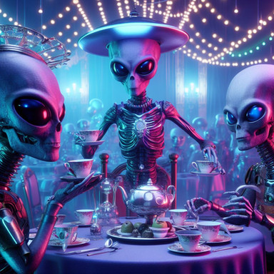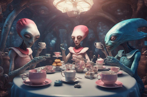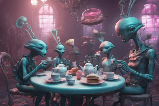 #ai #aliens #cyberpunk #surrealism #teaparty #aiart #bingimagecreator #drawtoberpart3 #drawtoberpart3aliens