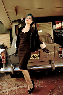 This could be better. The one thing that really set me back about it was that she should have done the same exact thing except on a Classic car (T-bird comes to mind). Then the juxtaposition of something 'classic' with something not classy would have made for a wonderful photo. But she's sitting on what? The equivelent of a Honda Civic? It just didn't do it for me.