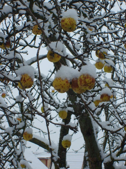 First snow of the season, Thanksgiving Day.Apple tree in my front yard.