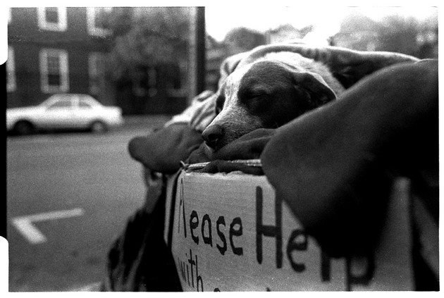 i agree that the animals are an important part of this photo...i've heard comments that the homeless shouldn't have an animal since they can't even feed themselves...but when i see someone on the side of the road asking for spare change, and their dog is sitting faithfully by them, i am thankful they have at least friendship and loyalty - the way only an animal can give.