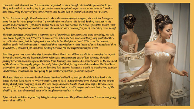 For some, #stepfordshape might seem like a trending hashtag - but some have always been there, whether they knew it or not.Author's Note: so this is just a quick standalone caption to space things out before the next series... which is ten parts. Bit of a long, slow burn on that one, but in terms of sketching out the wider world where #stepfordshape becomes pervasive, it's key to see how one might supply such a trend... before becoming a part of it themselves, of course. Stay tuned!