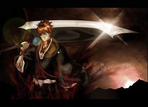 Well first off because it would be a bad thing not to do. I did not do Ichigo. I slightly edited the hilt and messed with his cheek a bit. Oh and I suppose I could mention the hair. Such a tedious thing to remove background around hair. I'm lucky he didn't end up bald ^_^ Anyways I did this in different variations. My first actual background which I call "Cloudy" and then "Swirl" didn't see that coming now did ya? I did both in red, blue, and orange to try and decide which I like best. I ended up liking the orange swirl the most. Done in PhotoshopRelated content