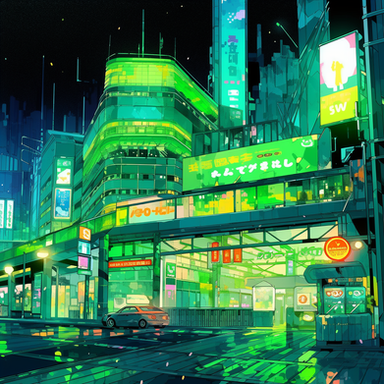 #building #crosswalk #cyberpunk #green #skyscrapers
