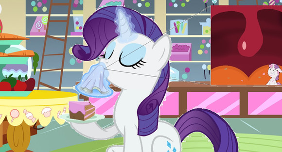 Rarity: [Touches her belly with her hoof again] "Jokes, darling, are supposed to be funny."