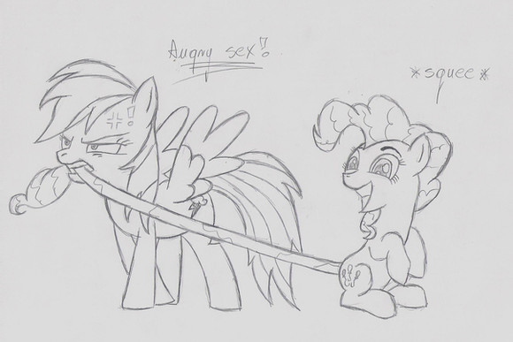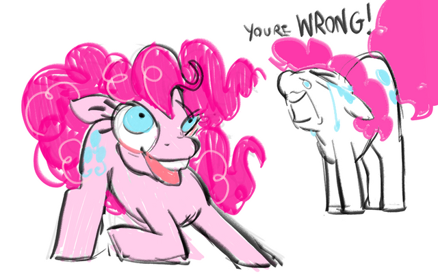 I think a funnier joke would be if Pinkie did an Ace Ventura reference & said "Excuse me, may I ASS you a few questions?" or something like that.