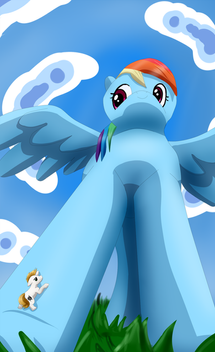 R.D : *She turns her head and sees him on her back* Oh celestia... *She drops him with her tail*