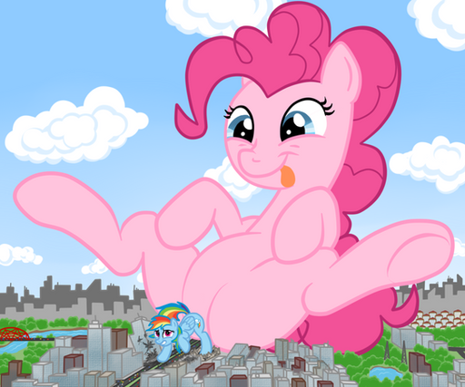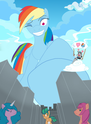 Either she's about to squash some ponies, or that's one very big Brohoof she's giving all the bronies, XD!