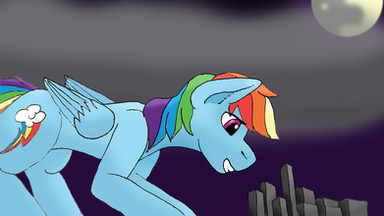 RD : *Walks and stomps on DNFTT2011, without noticing* Ugh.. What's that crunch sound? *She said as she lifted up here hoof and looked beneath it* Wow, another person that I crushed! Finally, not like the other ones who think they are tough enough to handle me.