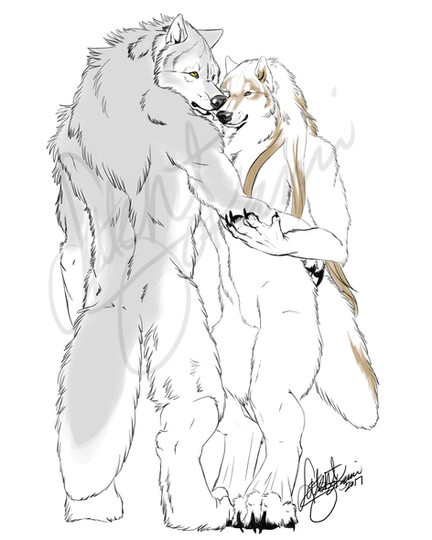 It is complicated to explain.I usually make enough drawings of wolves (and other animals) anthro. But this is something special drawing, is a couple who I have special affection and hope to make more drawings of them.