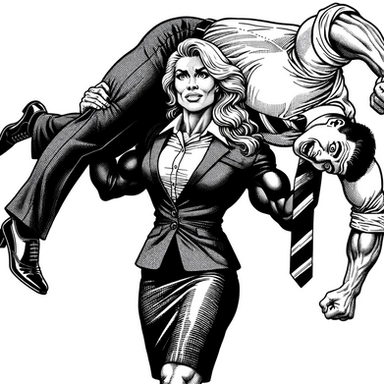 I love how he desperately struggles in the Grip of her massive Bicep!