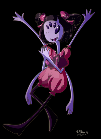 2. I now imagine this Muffet and Mettaton doing a Spider-Man kiss.