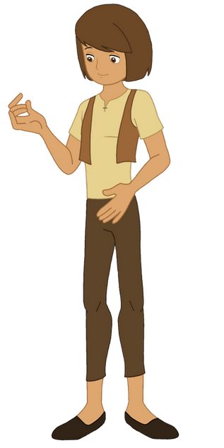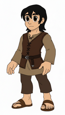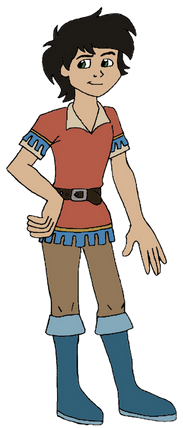 Here is my take on the hero of the reimaged version of Jack and the Beanstalk; a brave young lad named Jack!Like in older versions, his last name is Spriggins, and for my version, he lives in an old farm with his father. Just about a year ago, Jack's mother disappeared and most of their treasure and livestock were stolen, leaving him and his father pennyless and devastated by the loss of her (which revealed that she was only kidnapped by the terrible ogre king who used her as one of the dancing slaves). One day, Jack and his father sets out to the market to sell their only prized aged cow, Milky White, only to find out that King Bunderbore had already ruined the fair market and had taken all of their food, livestock and money as well, leaving the land poor and no food supply. As the father and son sadly headed for home in disappointment, they encountered a strange woman (which it was a good Fairy in disguise) who offered them some magical beans. Jack was eager to agree, but his father was uncertain that the beans were magic, but, in needs of food, reluctantly agreed. That night, they planted the beans, and they were in extremely big surprise when they found out the next morning that they didn't actually grow food,.... it grew into a very big, tall and gigantic beanstalk, all the way to the top of the sky! Jack and his father climbed up to the top of the sky... and into the magical World of the Giants! They meet the strange woman there, who revealed herself to be a good fairy and told them about the ongoing war between the ogres and giants and small people/humans and revealed that Jack's mother was still alive and was held captive as one of the slaves of the King of the Ogres who was planning to marry a beautiful giant woman, Jaquline, whom he kidnappedfrom her own husband and two young children. After the fairy departure, giving Jack a magical amulet with powers to transform the wearer into anyone or anything to disguise himself, Jack and his father sets off on their dangerous quest....