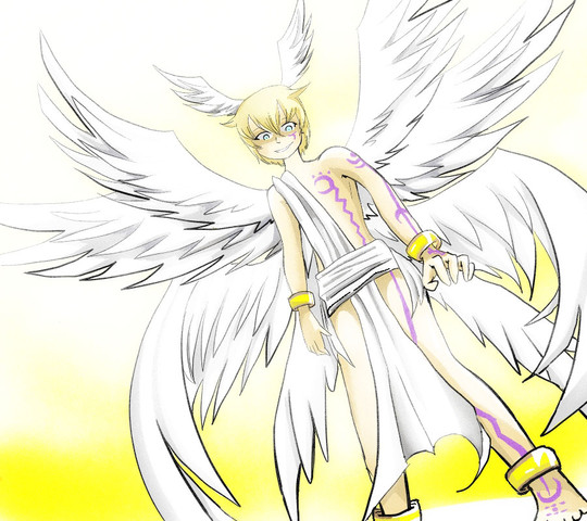 YESSS its digimon! I used to love this show AND their movies...OMG! thier so awesome, i watched the first 3 then diaboramon strikes back, and had to draw angemon(he was my favorite) but my own rendition of him(of coarse)you can see angewomon here