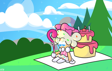 //playing TBoI//draws Cheesecake Cookie in a lineless style