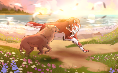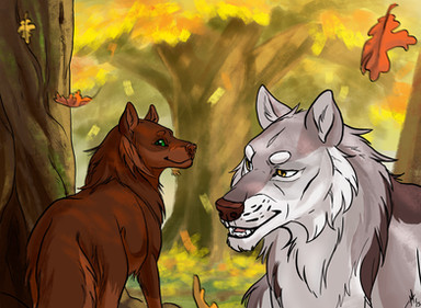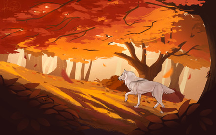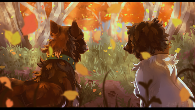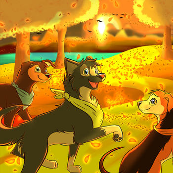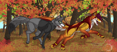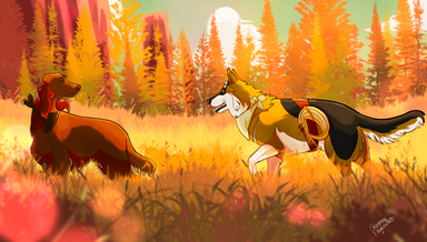 Some experimenting with this. I didn't want to make it too dark..These are my too characters Freddy and Cheese running through a forest in the fall.