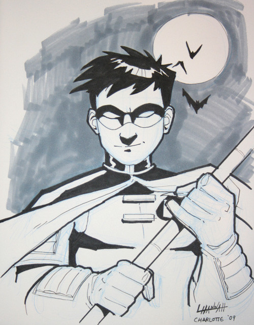 Another quick comic shop sketch.The odd simple looking ribs on Robin come from my old batman sketches,