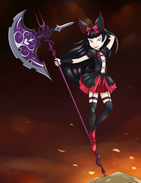 haha she is actually aΒ demigoddess and an apostle of Emroy, the god of darkness, war, violence, and death.Β ...Β xD despite her looks~