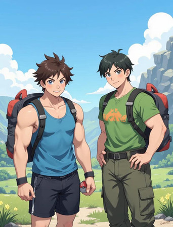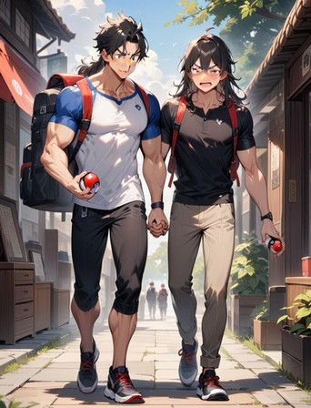#pokemon #pokemontrainer #digitalart #anime #muscle #ai #backpack #body #digitalpainting #handsome #men #photography #pokeball #portrait