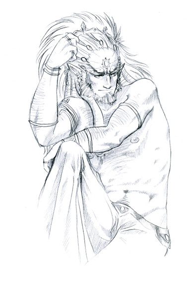 There's a very naturalistic vibe to it. The way the folds drape around his form makes the drawing seem palpable.