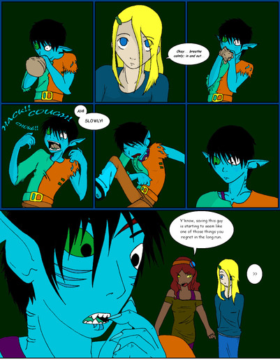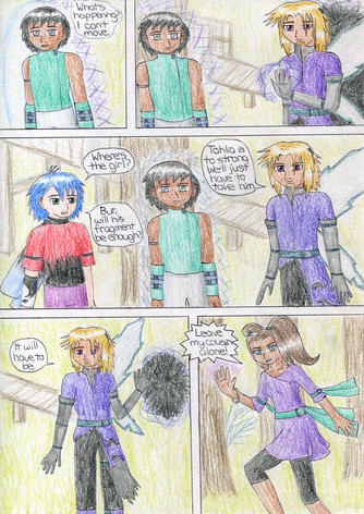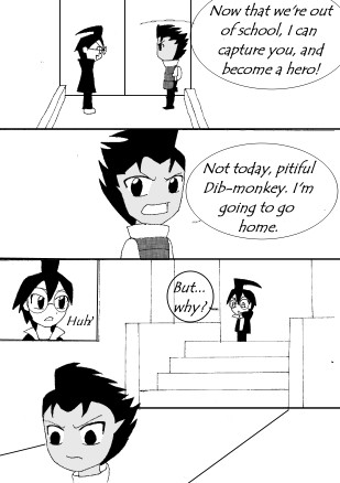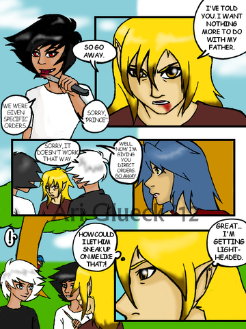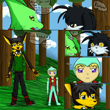 This is my failed attempt at producing a color comic. I've been so inspired by Earthsong and by Inverloche, I decided I would try one. I need to learn to use my layers better.As you can see, both characters are cell shaded. I'm new at this... I need to practice that more.