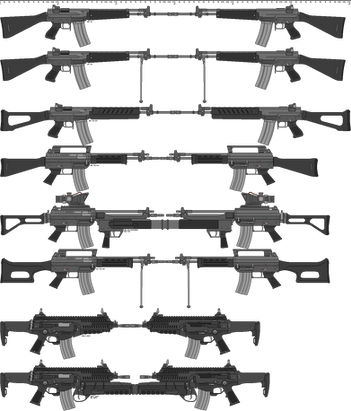 I'm still working on the backstory, but yes. Long story short the rifle at the top is an improvement of the FA-60 designed to be lighter and less bulky, the one at the bottom is a direct development of the M1950 which competed against the FA-60 but lost the Army contract, its designed to simple and cheap mostly made of stamped parts rather than milled like the FA-60, despite its defeat during trials development continued and later was adopted by the National Guard which at the time was still equipped with large numbers of M40s and M50s, this made the transition alot faster.