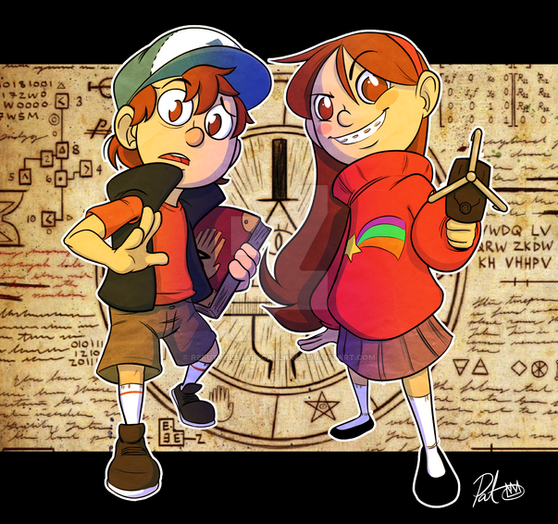 Awwww, those nerds are really two peas in a pod. I love how Ford is transparent due to how he is no longer that young and innocent, and the cipher wheel in the background, the procephy in which their fates are both intertwined. I wonder if Dippers dad is a nerd as well. Doesn't he work with computers???