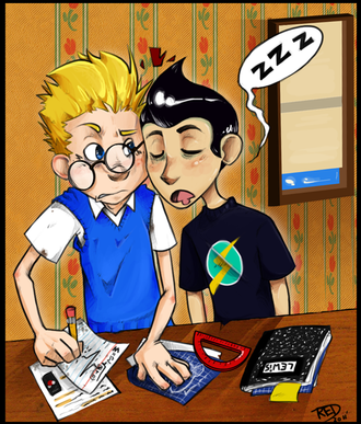 " title="Sweating a little..."/> I love how his glasses are kinda bent by him falling asleep and most likely bending them when his face fell into the crook of his arm. And the little detail of the page of his sketchbook being crinkled is cute as well.
