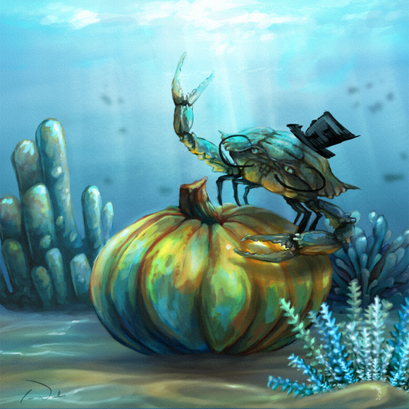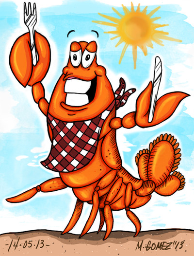 I made this for a friend. Anyways, some restaurants' logos have mascots of what they are selling being very happy. It's like the mascot is saying "yay! Come in, I'm happy to be eaten!" Chick-Fill-A got it right, they use a cow to promote "eat chicken instead".Table cloth texture: [link]