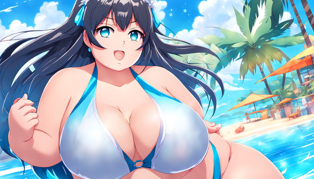 #anime #animegirl #curvy #curvygirl #hugebreasts #giganticbreasts #bigbboobs #ai_art #ai_generated_art #novelai #beach #bikini #bikinigirl #holiday #curvybody #beachbikini
