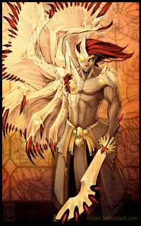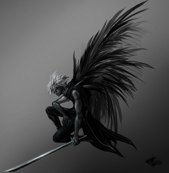 I like Kaen. That sound in a name is always really awesome. He kind of reminds me of Shugo! Y'know, with the black wings, and light hair n all. I dunno... Maybe it's just me. I really like 'im! Awesome design thus far, Ty-chan!