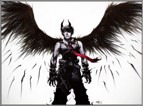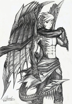Incredible work on that wing! I love the soft shading work, and the way you defined the muscular look. The expressionless face is a perfect touch to accompany such an elaborate wing. Very powerful piece here.
