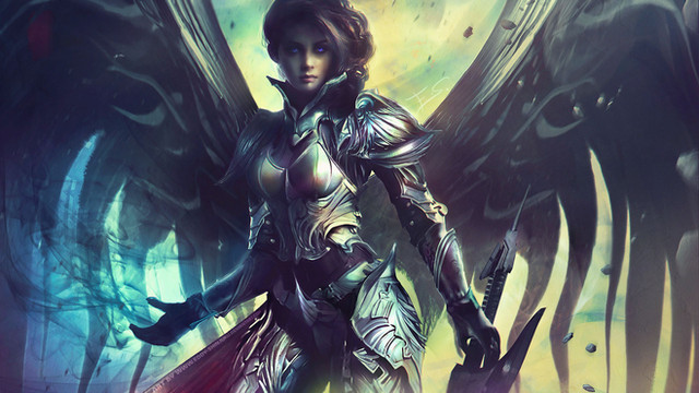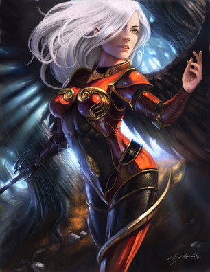 That's cool. You don't see many female angels with armor and swords. Or, is she a valkyrie? Something else?