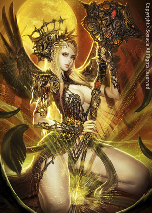 That's a beautiful woman. Not sure how she's going to wield both of those swords though!