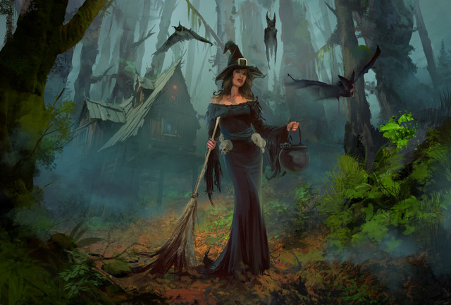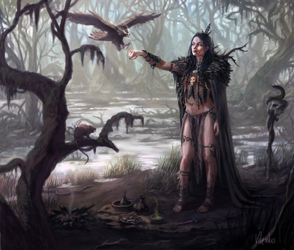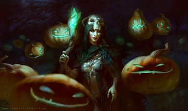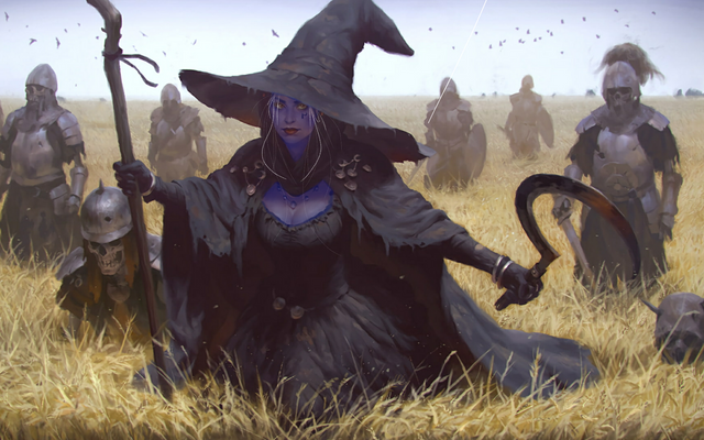 Holy Smokes! This is fantastic! Really nice work. I love the look of her costume. Her hat is very Gandalf-esque. And I really like the undead warriors rising behind her. It makes me wonder what is going on. What epic tale is this scene part of? Excellent work!