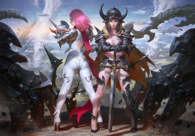 I really appreciate this picture, but not only for the obvious reasons. I love the compactness of their bodies- they're not rail thin, but rather are obviously in good physical shape yet still have lovely curves. I'd love to see them without the armor just so we can appreciate their forms more. I love this- well done.