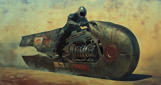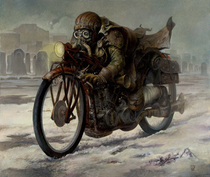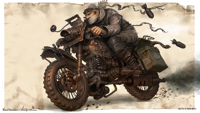makes me think of fallout new vegas if people actually fixed those bikes lying around and used them xD