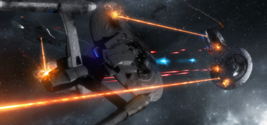 The Lexington comes to the aid of the Excalibur after being ambushed by Klingons in contested space.ΒRendered in 3DS Max with post effects in Photoshop CS6
