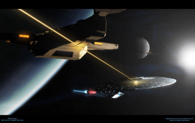 League Cruiser CR-21 attempts to run through the Draco warphole to get into Alpha Centuri and commence supply disruption operations. 2 Navy cruisers attempt to head her off and surround her. CR-21's captain uses her superior speed to avoid the beam cannons and Tractor beams. Once CR-21 reaches the warpholes event horizon she is free to enter.The Captain had to change his underwear after what he described as a 'brown trouser moment' in his log.