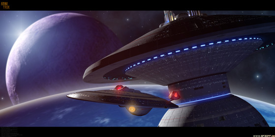 With Excelsior in hot pursuit the Enterprise goes to warp for the final time to rescue a comrade from which she will not return.I only watched Star Trek 3: The Search for Spock all the way through recently as I bought the original motion picture collection for the bargain price of £20. Once I saw this scene I had to a render of it, what really took me by surprise on the original scene was how well it was done. The Starship movement was smooth and fluid especially when the Excelsior swung underneath Spacedock in pursuit of the Enterprise.