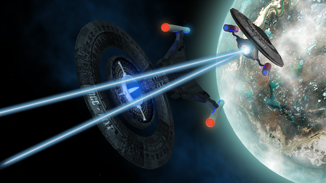 You mean I'm an obsessive detail whore (and quite right you are). I don't really have anything here. Maybe the shields on the Klingon vessel (they'd be green-ish) and you wouldn't potentially see that much of an atmospheric glow on the dark side of the planet, but... otherwise it's really good work!