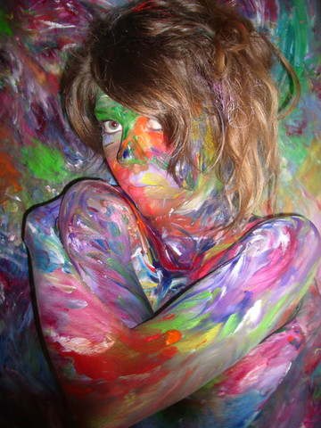that is hilarous. you've got a very bright, very real, very young artist holding up her very unreal, very dark, cadaverous, sensuous corpse of a body.