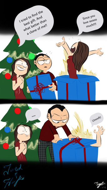 Originally this joke was about Valentine's Day instead of Christmas and it was done by the now-infamous Shmorky/Butthug, and since he has taken down his site where I saw this joke (and many other funny/adorkable joke comics), I've been thinking about remaking some of them. That way people can enjoy the good humor for what it was WITHOUT having to separate the art from the artist. We'll see. For the moment, have this lol