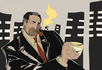 Another OC from the gangster/noir story I'm coming up with.This is Frank Castello, head and founder of a crime organization known as 'The Castle'. He used to be one of the most powerful mob bosses of Manhattan before Derrick Gacy showed up to control the island with an iron fist. Because of these major changes, Castello oversees a lesser (lesser compared to what it used to be) business founded on union corruption and the traffic of exotic drugs.