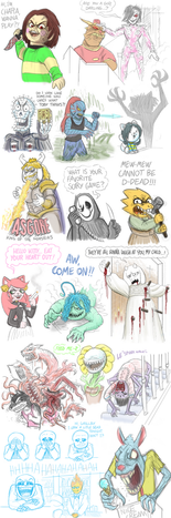 #alien #chans #chara #crossover #flowey #lancer #muffet #papyrus #sans #seam #slither #spade #sprog #terminator #wendy #jevil #the_thing #toriel #happy_tree_friends #firsk #garbage_day #undertale #alphys #the_cabin_in_the_woods #mettaton #asgore #asirel #mad_mew_mew #silent_night_deadly_night #monster_kid_undertale