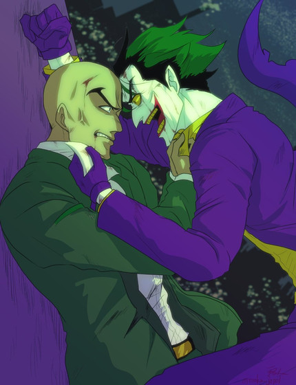 "Lexy, take it from someone who knows; Don't wait. Do it now."This is based on the episode 'Injustice For All' from Justice League. Joker is such an attention whore, don't you agree? He's rubbing up on Lex every five seconds.