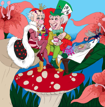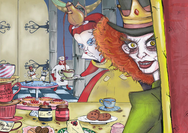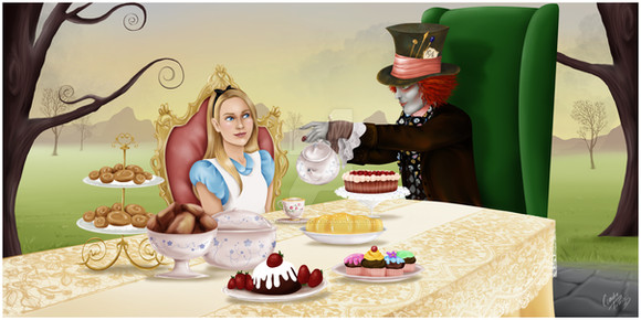 Is that a poison bottle by Hatter's foot I see? Revenge is sweet with cream and sugar.