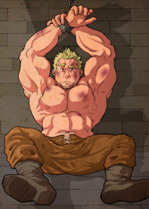 This is extremely erotic. To see such a handsome man with all those powerful muscle so vulnerable really tugs at the dark side of me. The SLAVE sign adds volumes to this but it is his expression that reveals so much. This is a man who fears the worse; that he will be used by another man as a sexual toy to be ultimately taken in a way he would never consent to. Pure perfection.