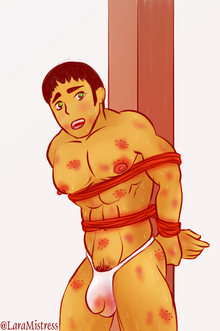 I went with the idea of the character being put against a wire fence and well .... look at his poor red butt checks