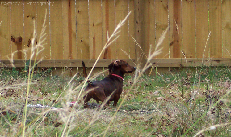 Winston outside trying to find what the odd noise was outside. It was actually a huge truck driving by.Photographer: Myself (Stacey S. Photography)